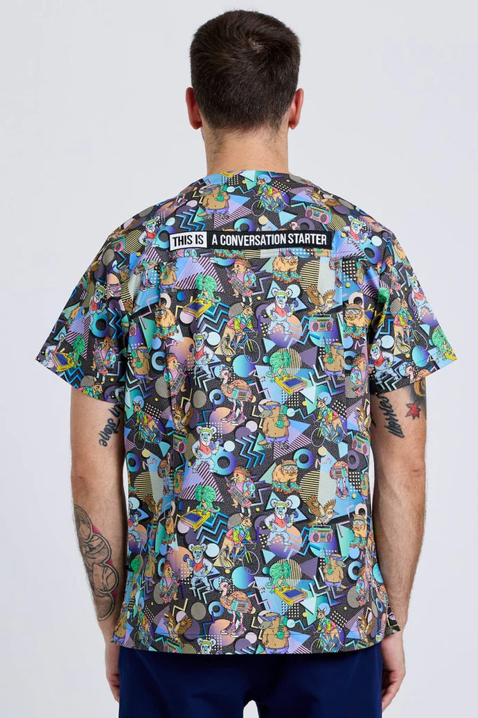 So we made scrubs. Aerobics OzStyle unisex scrubs are our latest range of conversation starting nursing scrubs. This unisex scrub cut fits everyone and is perfect for starting conversations on shift with patients, their families, and your colleagues.